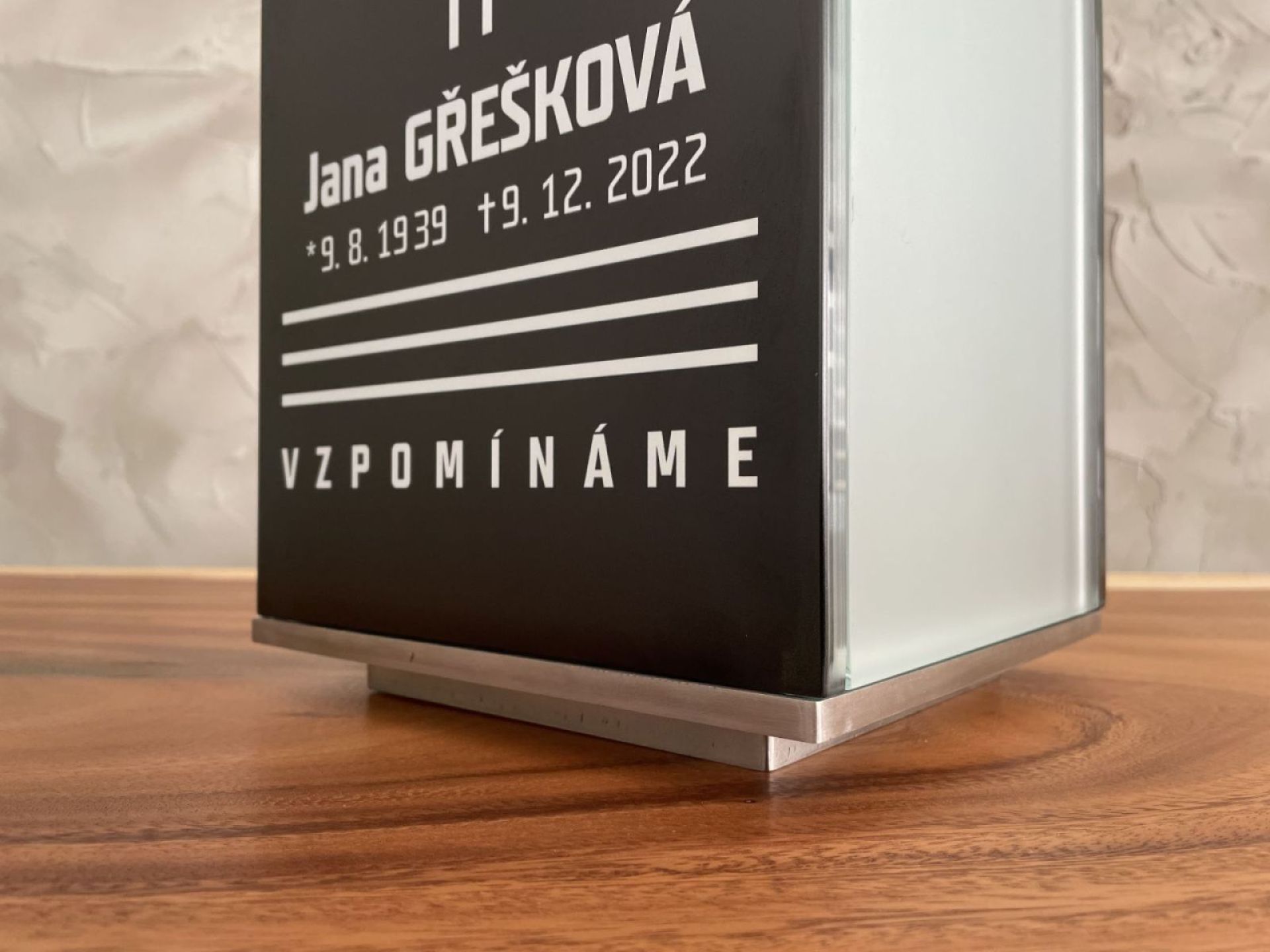 El vidrio es símbolo de pureza y elegancia atemporal. Nuestras lápidas de vidrio están fabricadas con vidrio extra claro, que no distorsiona los colores y aporta a la memoria un aspecto único. Gracias al preciso mecanizado CNC, garantizamos la máxima precisión y calidad en cada detalle. Ya sea que elija una placa sutil por su ligereza y delicadeza, o un vidrio macizo de 10–12 mm de grosor por su resistencia y aspecto impresionante, siempre obtendrá un producto de la más alta calidad. También ofrecemos la posibilidad de grabado y personalización, incluyendo una imagen en la tumba que preserve los recuerdos de forma perfecta.